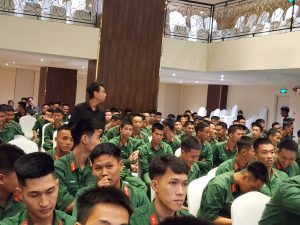 ➤開催日:2025年8月20日(水) 【説明会】13時30分~16時30分、【交流会】17時~19時30分          ➤場所:ベトナムのフエ市 「La Vela Hue Hotel」                                      ➤主催者:【日本】(一社)建設技能人材機構、【ベトナム】HAI PHONG GROUP(送り出し機関)        ➤開催趣旨:フエ市軍団内の2026年退役予定の軍人に対して、退役後の就職先を検討する参考情報を提供する。     ➤対象者:2026年退役予定の軍人 約350名(年齢は20歳~30歳代前半)                     ➤日本側参加者:27名(別紙の参加者リストを参照)                                ➤説明会内容:別紙の説明会プログラムを参照