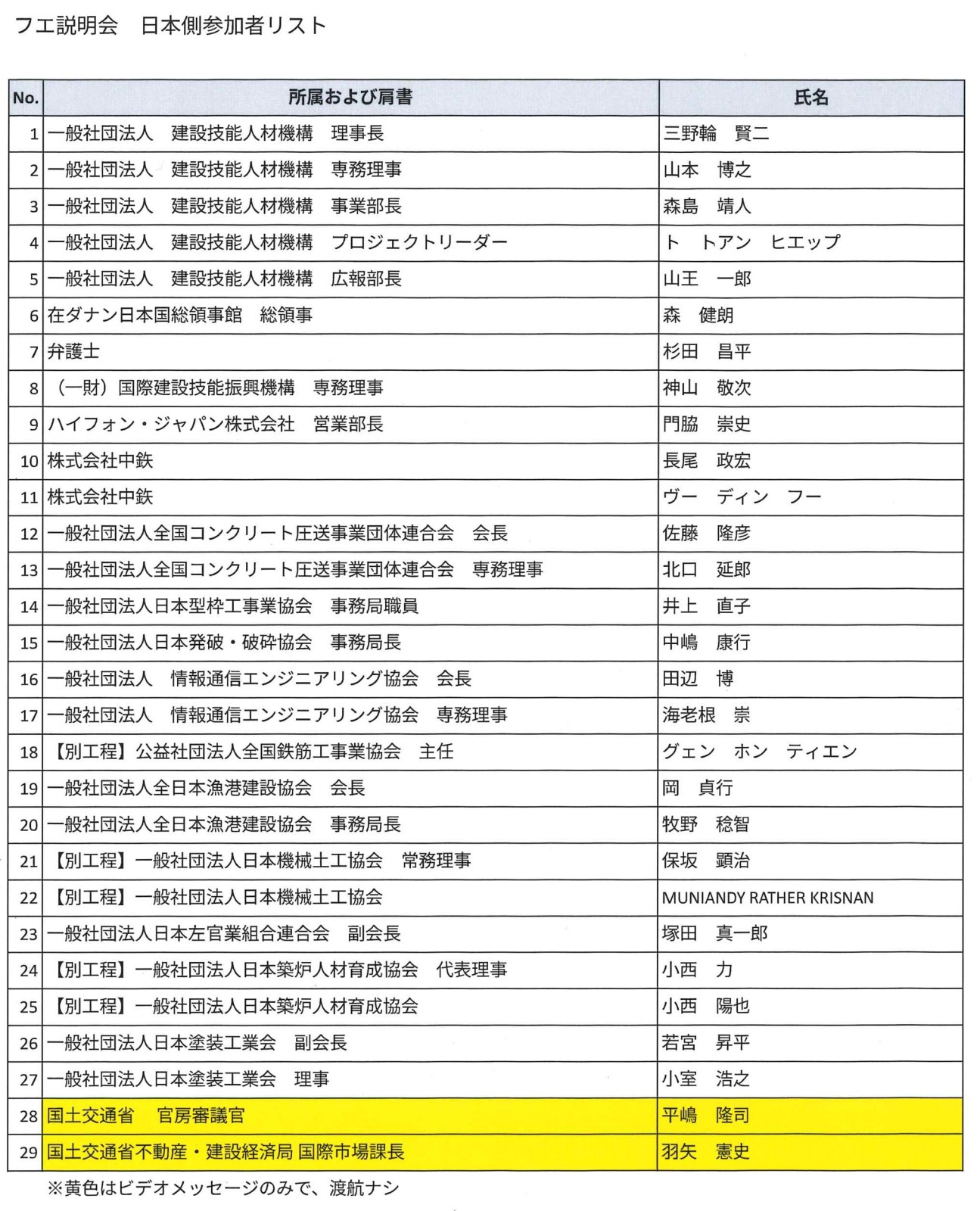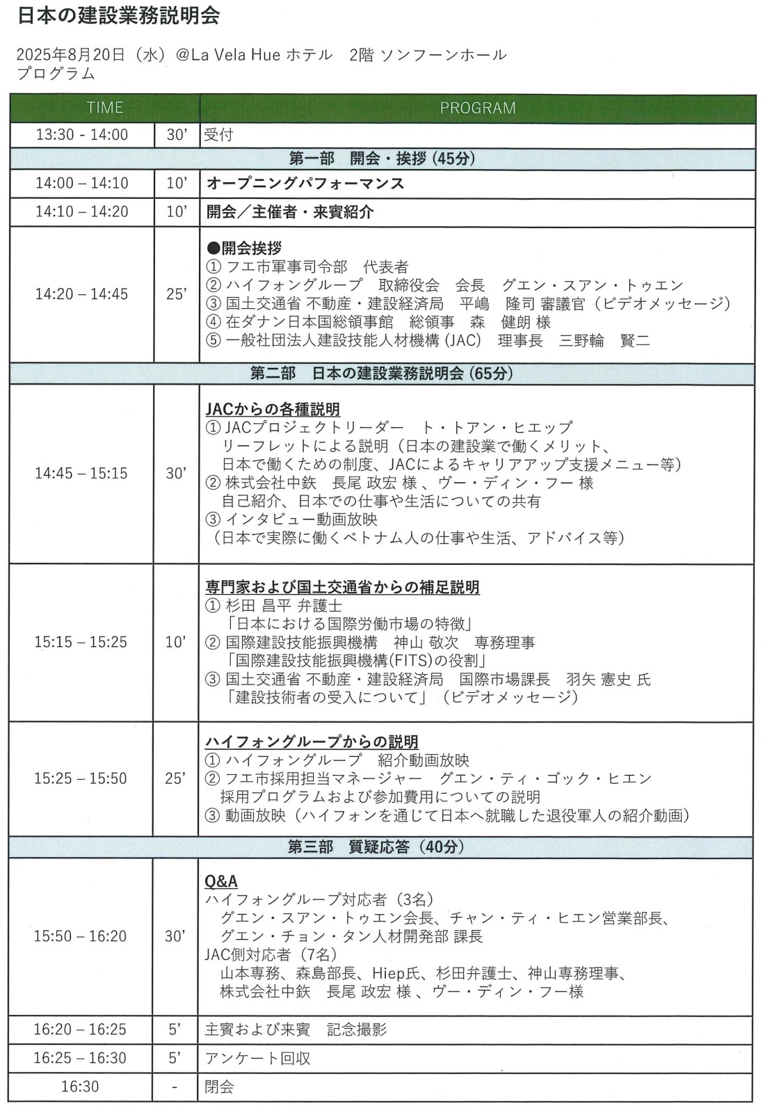 フエ説明会 日本側参加者リスト 日本の建設業務説明会 プログラム